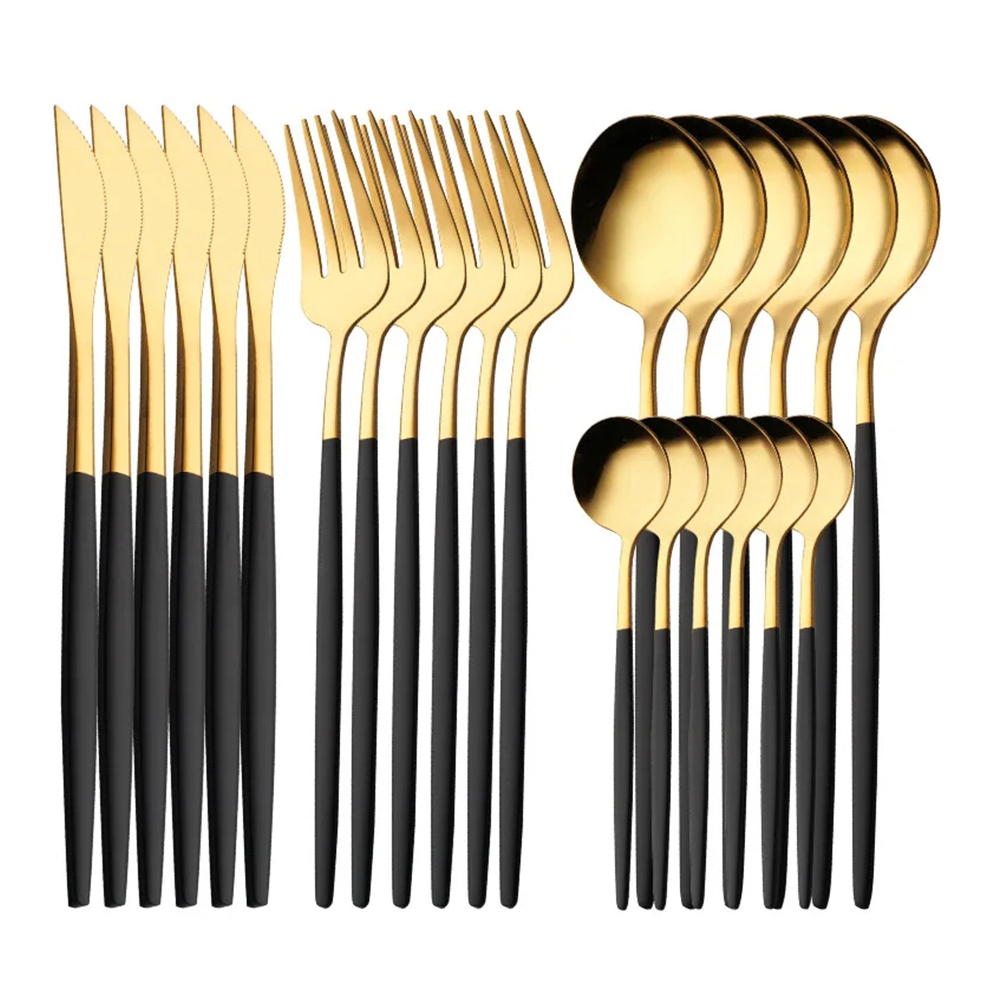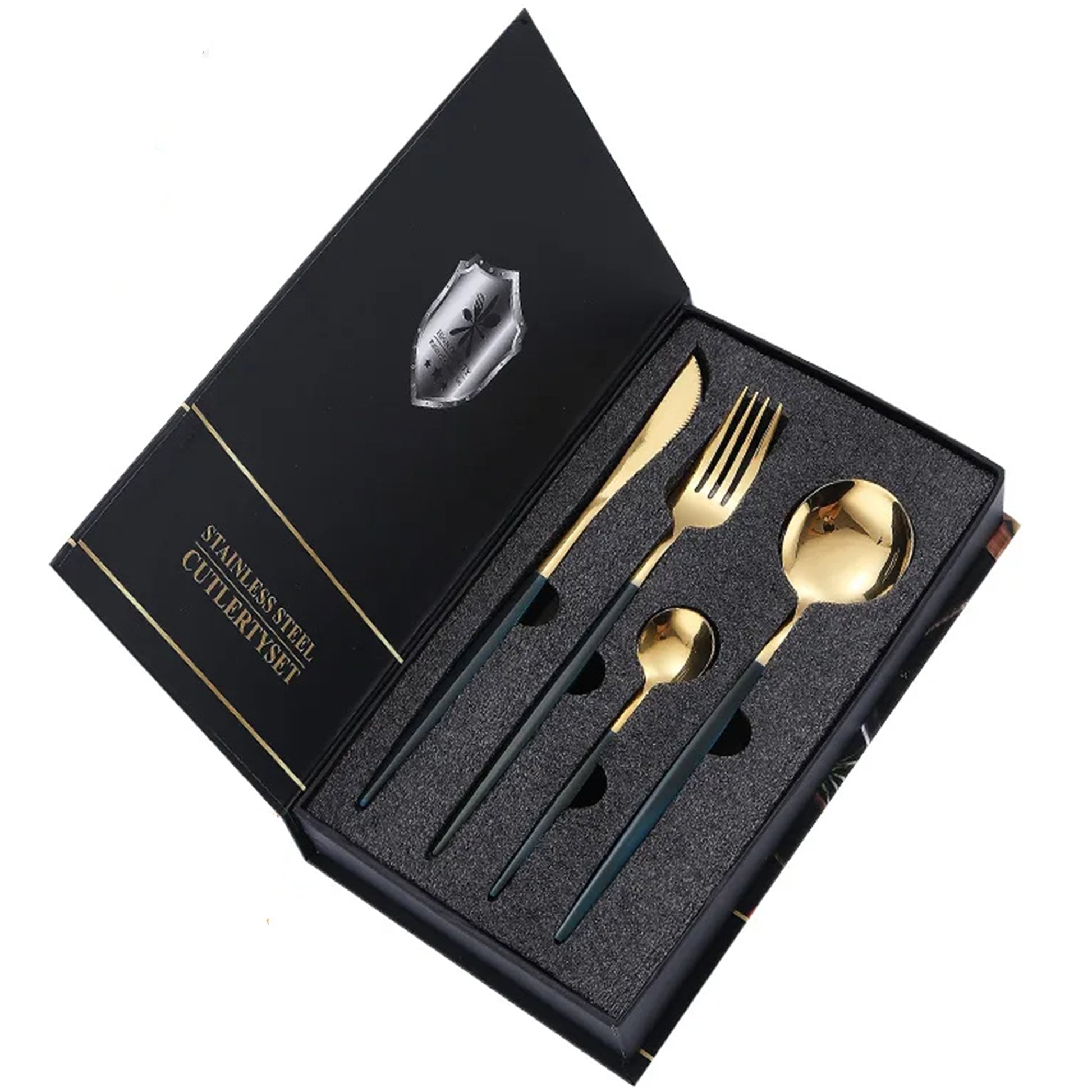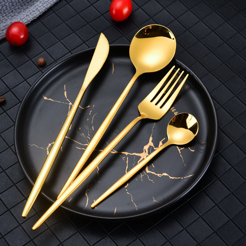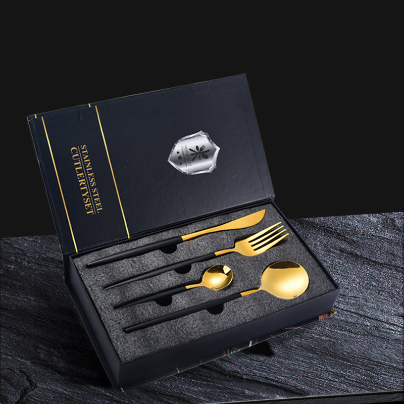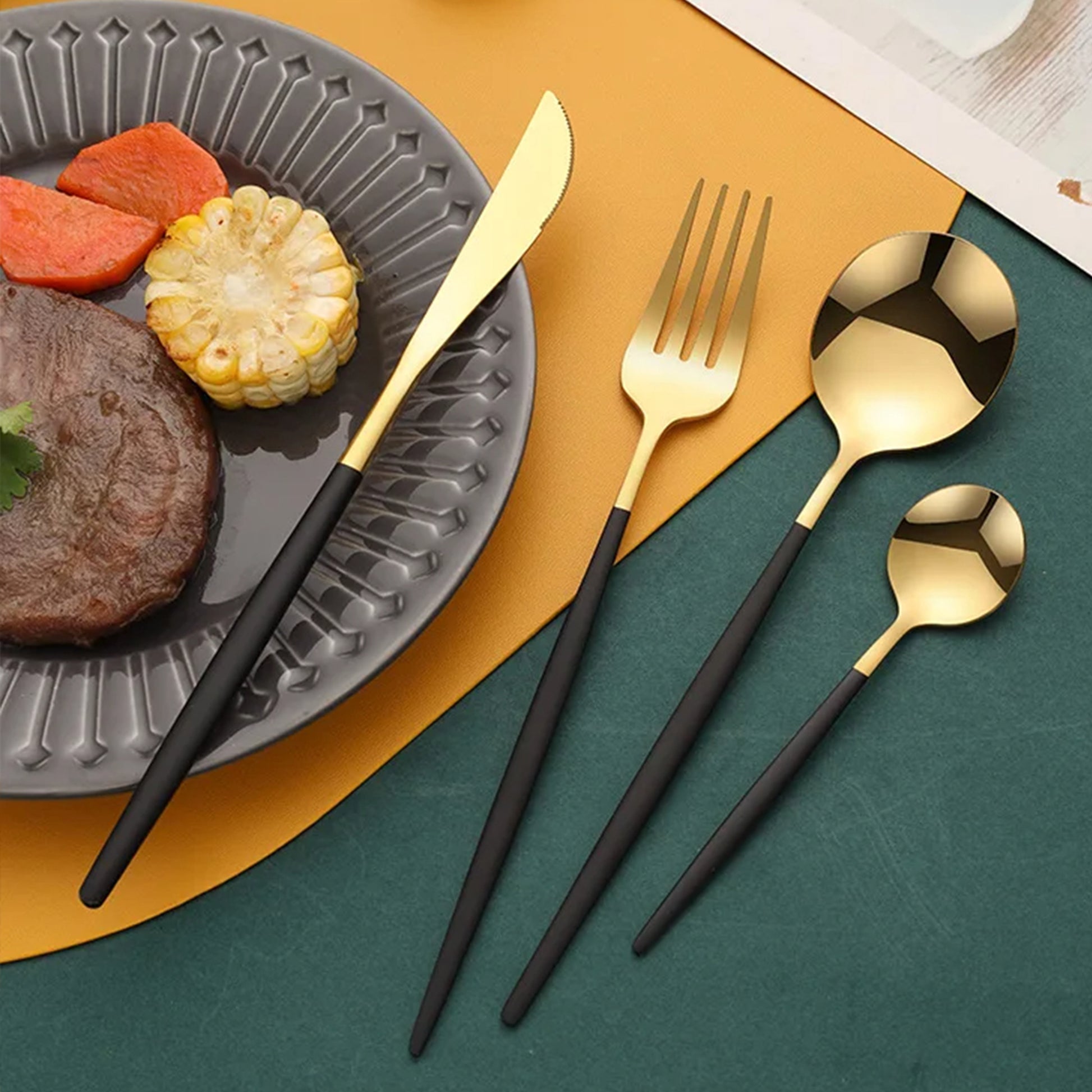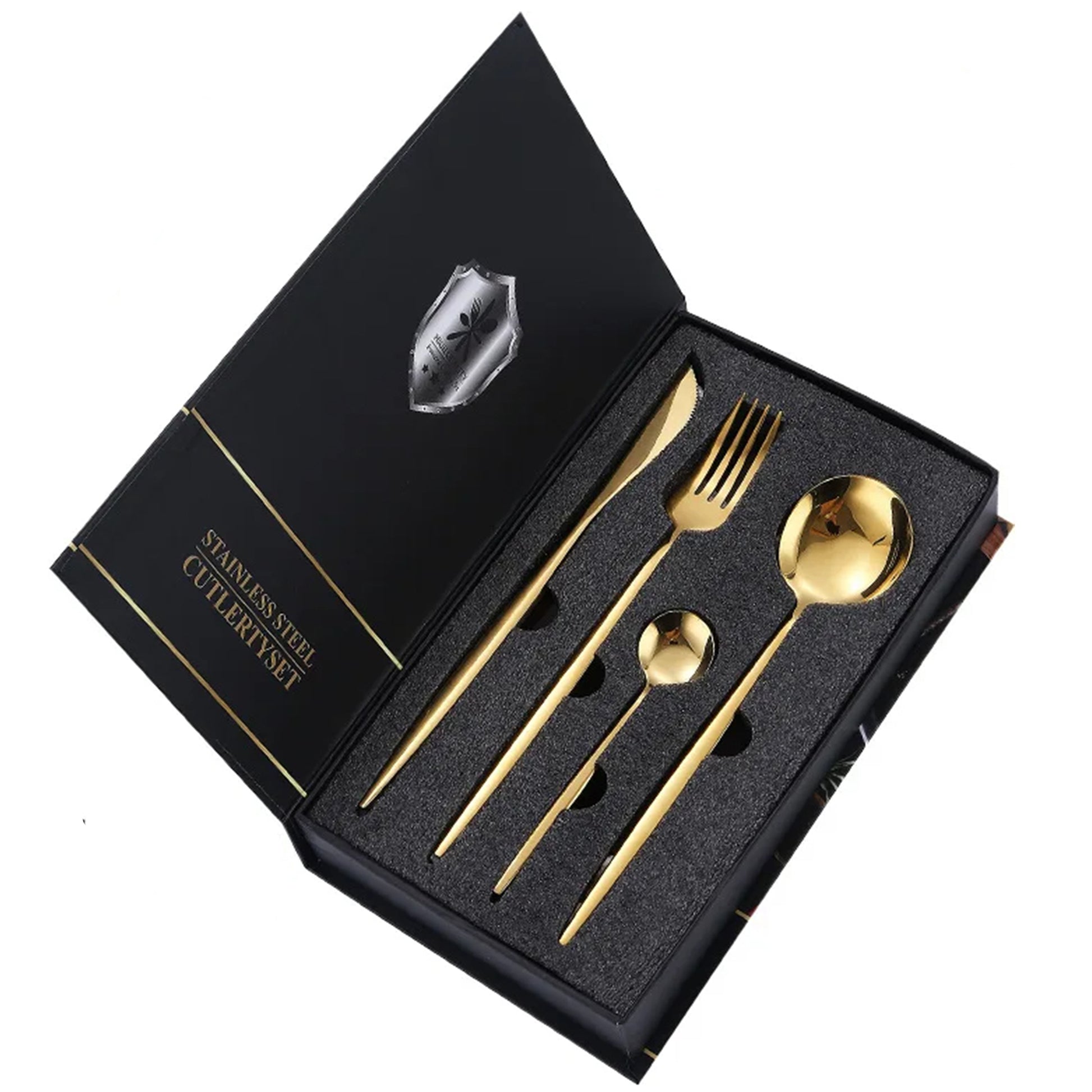 Vier je feest in stijl met deze prachtige 16-delige luxe bestek set in zwart/goudkleur met het oog op kwaliteit, uitstraling en duurzaamheid van Chefs Cuisine.