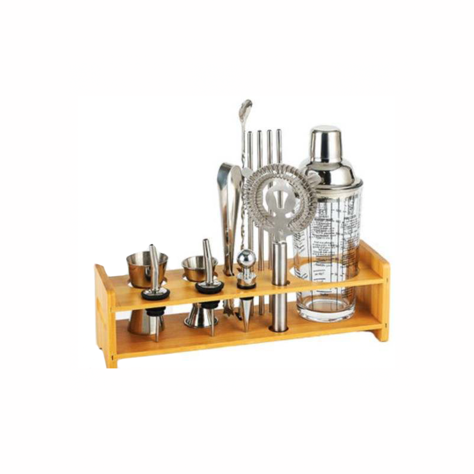 De vernieuwde cocktailset van Chefs Cuisine is een uitgebreide 12-delige set. In deze set zit niet alleen een shaker, een strainer, een barlepel en 2 handige jiggers, maar ook een zesteur voor je citroen zeste. De set is in luxe uitvoering, met een bamboe houder op pootjes. Alle onderdelen zijn van kwalitatief RVS materiaal - dit heeft als voordeel dat je de onderdelen na gebruik ook kan afwassen in de vaatwasser.