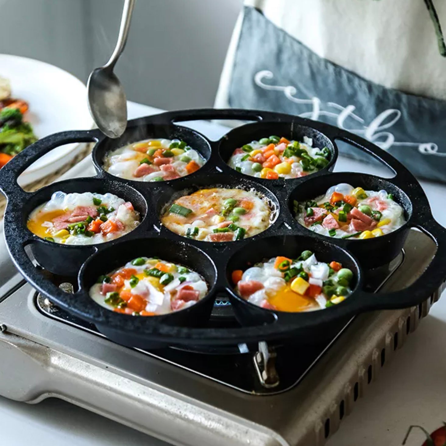 Deze Chefs Cuisine poffertjespan / muffinpan vervaardigd uit gietijzer en heeft de vorm van een plaat die je op iedere warmtebron kan plaatsen: elektrisch, gas, inductie, keramisch, in de oven en zelfs op de BBQ! Heb je er genoeg van om eindeloze koekjes of muffinvormen te doorlopen die na slechts enkele keren gebruik worden weggelegd? Met deze gietijzeren koekjespan van Chefs Cuisine kan je koekjes, muffins, poffertjes, scones, hamburgerbollen, mini cheesecakes, taartjes en nog veel meer maken. Dankzij de handvatten is de bakvorm uiterst gemakkelijk vast te nemen. Tijd om die zoete kookkunsten boven te halen, plezier voor het hele gezin!